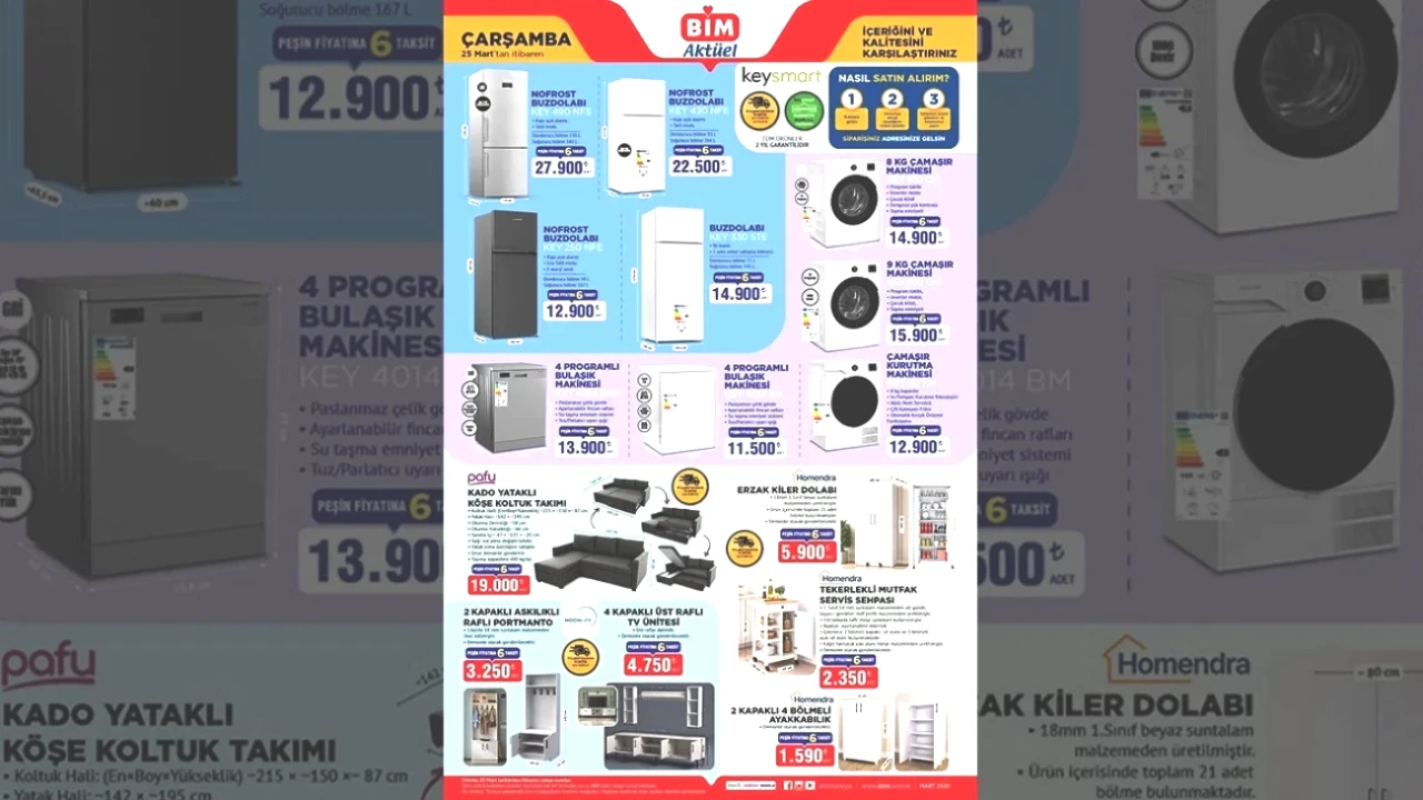 BİM'in 25 Mart Çarşamba gününe özel aktüel kataloğu, birçok vatandaş tarafından merakla inceleniyor. Türkiye genelinde şubeleri bulunan bu zincir marketin bu hafta yayınladığı katalog, özellikle çarşamba gününe yönelik dikkat çekici fırsatlarla dolu. BİM market, 25 Mart Çarşamba tarihli kampanyasında, buzdolabı, çamaşır ve bulaşık makineleri için cazip fiyatlar sunuyor. İşte BİM'in 25 Mart Çarşamba kataloğundan öne çıkanlar..